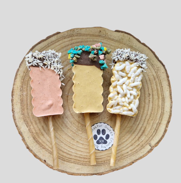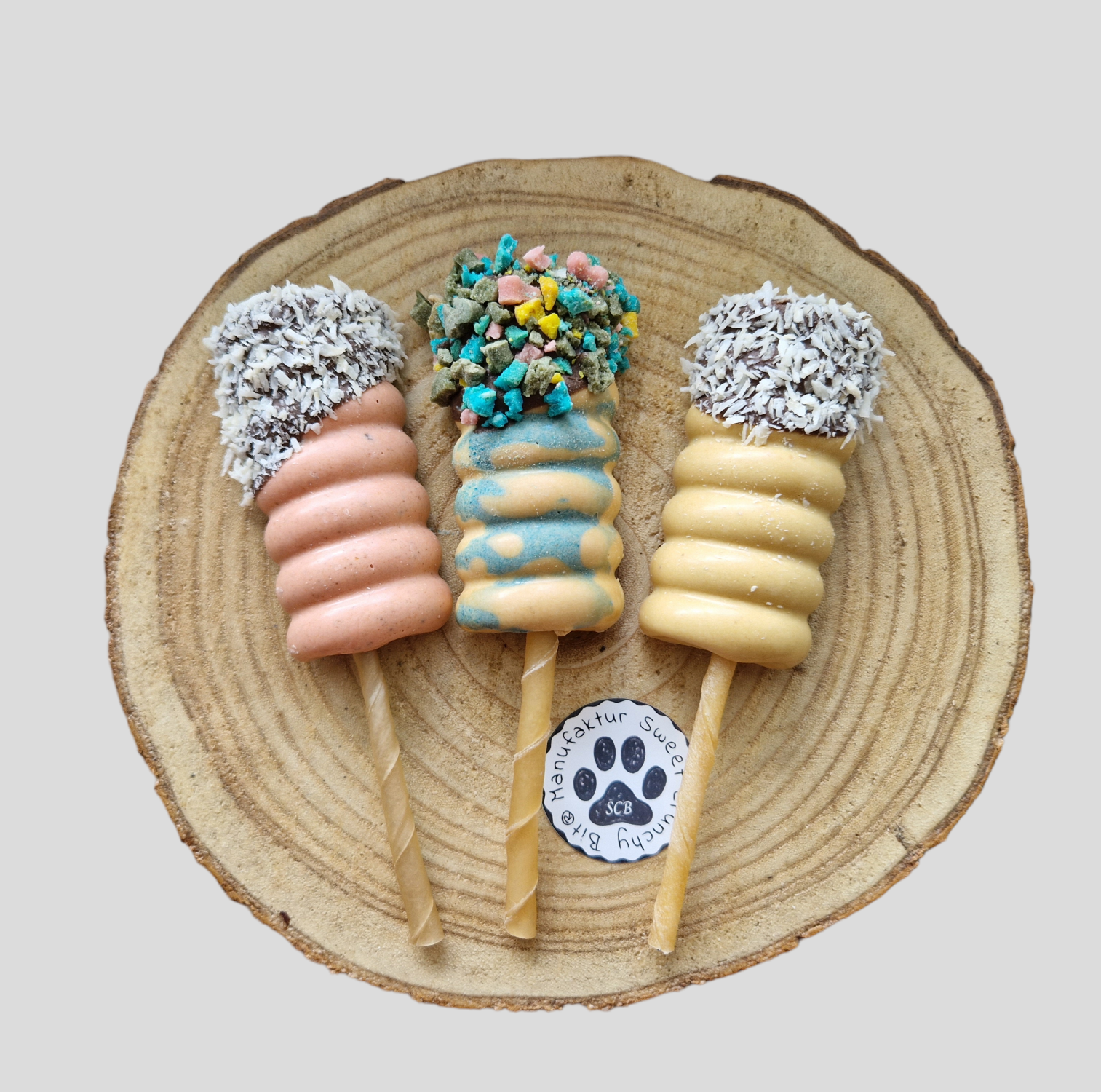 Leckere Schoki nach Wahl in Eis Form, mit Rinderstange als Stiel.