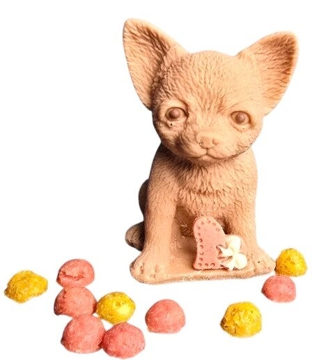 Süsse Chihuahuafigur in verschiedenen Geschmacksrichtungen nach Wahl, gefüllt mit kleinen Leckerlis.