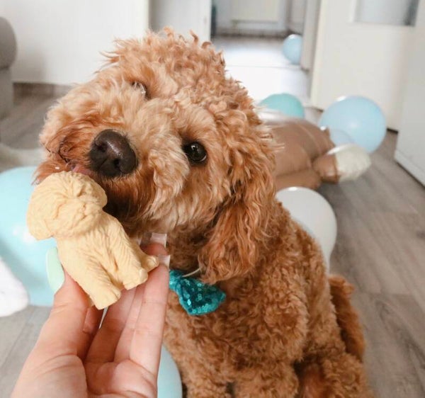 Happy Doodle in verschiedenen Geschmacksrichtungen nach Wahl, gefüllt mit kleinen Leckerlis.
